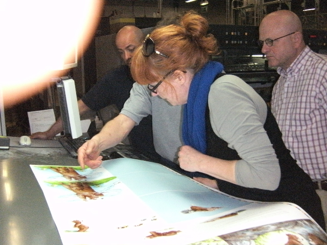 | Nicole, the talented illustrator, overseeing color with the editor, Bert Veltman |