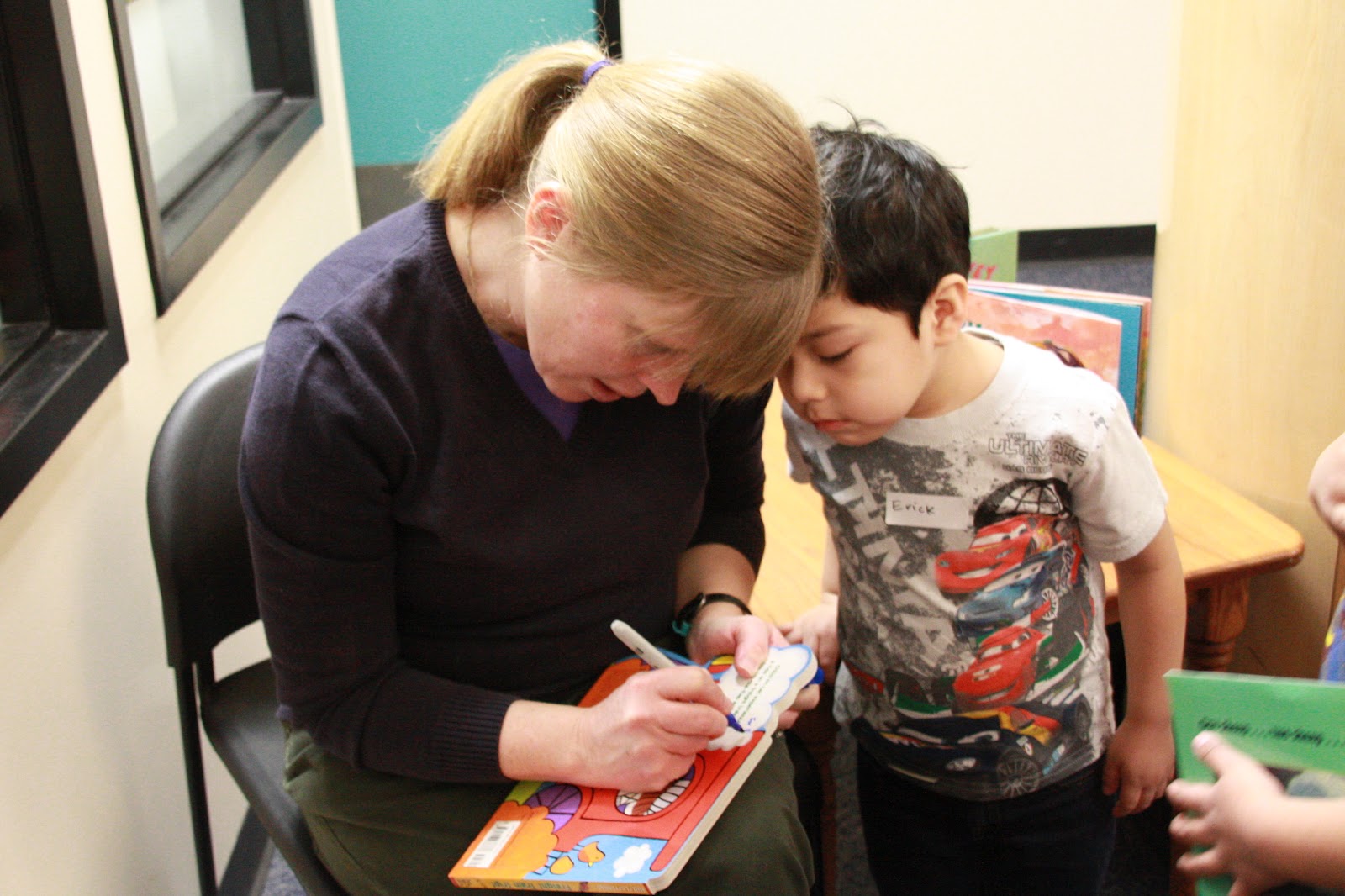 The reading event looks so wonderful, and how cute are you there among all those sweeties! I love the pic of you signing the book — your little reader is intent on making sure you do it right! 🙂