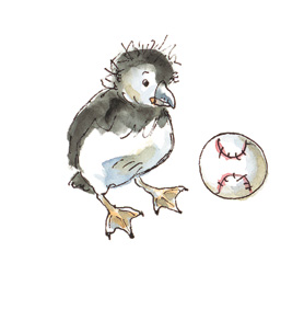 In April, hundreds of thousands of puffins flock to the Westman Islands off the coast of Iceland.  They nest in the cliffs, digging burrows into the soil where they lay their eggs, then hatch and raise their chicks, called pufflings.  By August, the babies are ready to leave the burrows and head out to sea, but some of them become confused by the lights of the town and land in the streets instead.  Puffins are too chunky to take off without wind and space, so if the babies land in town they can’t get back to sea by themselves – they need help.  The children of the Puffling Patrol search the streets, finding the frightened babies, placing them in cardboard boxes in their homes overnight, and returning them to the ocean in the morning.