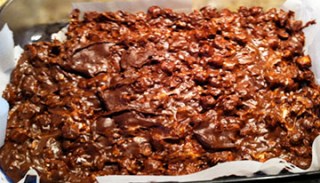 … mmmmm… some Rocky Road Cookie Bars!  They look sustaining, don’t they?! 🙂  Also just exactly like what your mother would approve of for breakfast 🙂  (Rocky road, by definition, includes nuts, and nuts have protein which equals healthy breakfast – see how that works?)
