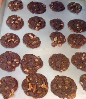 Just thinking about everything on my to-do list today is making me feel a little peaked.  I think it’s time for Something Chocolate!  May I offer you some chocolate turtle cookies?