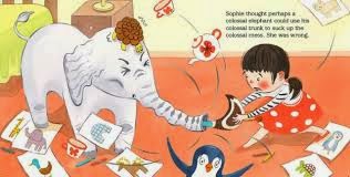 Brief Synopsis: Sophie’s drawings have the magical ability to come to life. One day, feeling lonely, Sophie draws a friend. And then another… and another… Sophie’s room isn’t quite the place for any of them, and accommodating their needs makes them impossible to play with (the polar bear can’t reach the scones and jam from inside his igloo; the duck can’t play hide-n-seek in a wading pool with nowhere to hide etc.) But in the end, Sophie finds a friend – no pencils or paper required 🙂