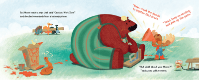 Why I Like This Book: As you’ve probably all gathered by now (due to the fact that I’m always adding her books to Perfect Picture Books list :)) I am a die-hard Corey Rosen Schwartz fan. Her books are always clever and fun with fabulous rhyme that is a pleasure to read aloud. This new addition is no exception. Moose is delightful in his bossiness, hollering commands through a megaphone, oblivious to the predicament he’s getting himself into. His friends are forgiving, willing to help him out even though he’s been a pain in the backside. The illustrations are appealing and engaging. The story is light-hearted and fun while still getting the message across that it’s best to work together – one all ages will enjoy!