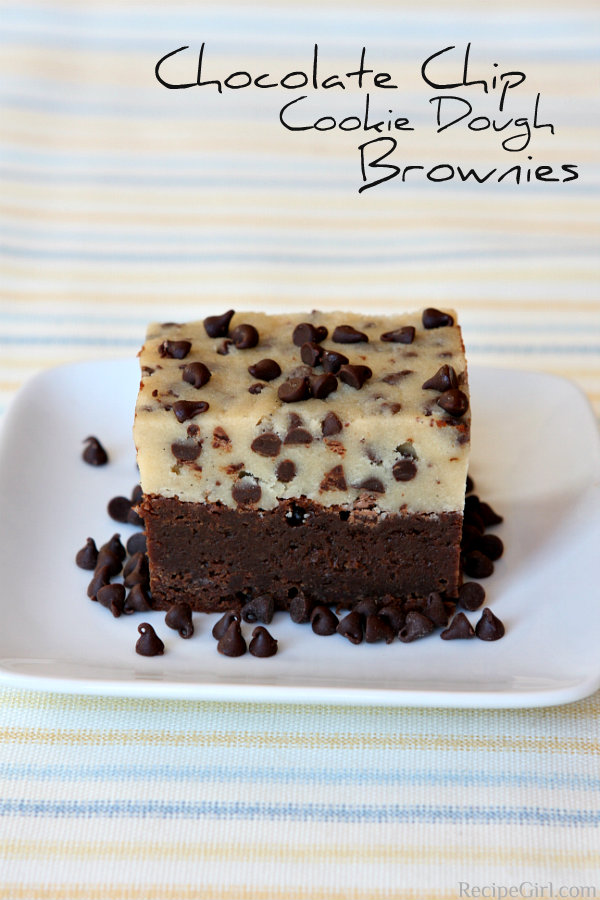 | Recipe at Recipe Girl http://www.recipegirl.com/2012/05/29/chocolate-chip-cookie-dough-brownies-take-two/ |