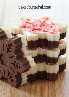 | So pretty! AND chocolate!!! Recipe HERE at Baked By Rachel http://www.bakedbyrachel.com/snowflake-peppermint-bark-memories/ |