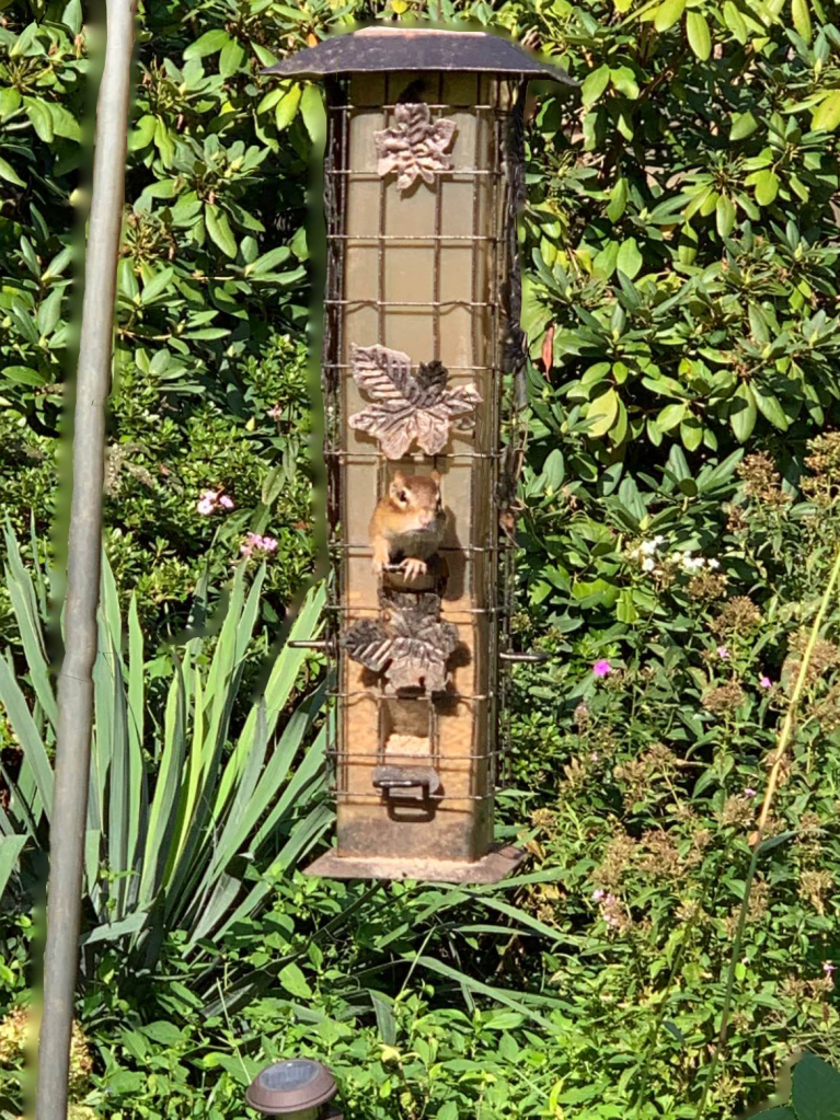 Even though it’s only been autumn for one day, there’s been a nip in the air the past couple mornings – only 36 degrees here on Blueberry Hill. The birds are flocking to the feeder. . . and so are the squirrels. . . and the chipmunks! A friend of mine posted the best picture ever on FB: