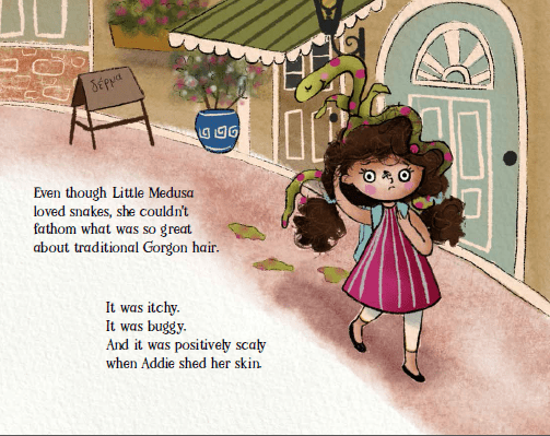 Synopsis: Little Medusa is the first Gorgon who doesn’t enjoy having her best serpentine friend wriggle through her hair. She finds herself torn between following family customs and keeping herself and her best serpentine friend happy. In fact, Little Medusa begins doubting if she even wants to scare anyone to stone with a stare!