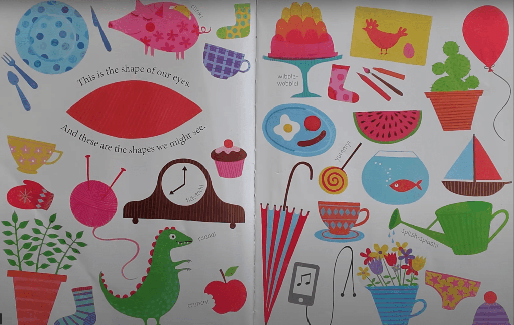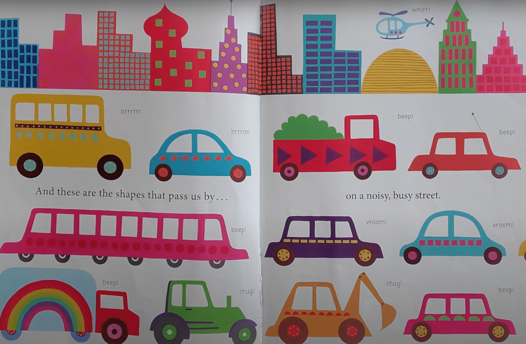 Why I Like This Book: This is the kind of book I used to look for when my kids were little. It has a simple but elegant rhyming text that explores the many shapes in our world in fun language – not these are birds, but “and these are the shapes that chirp and tweet. . . and flitter-flutter by.” (So much more enjoyable! 😊) The story takes the reader through the day from the shape of the sun “coming up to brighten the day” to “This is the shape of the moon. And these are the shapes of the stars. . . And this is the shape I love you with. This is the shape of my heart.” (What an ending. So sweet!) The art is bright, colorful, and engaging and provides the perfect opportunity for young readers to explore every part of the page. They can identify vehicles and animals. You can ask them to point to the umbrella or the popsicle, or ask them what sound a truck or a lion makes. The text invites them to make connections (“something savory” they can see is cheese, and “something sweet” they can identify as strawberries, and “this is the shape we come back to at the end of every day” encourages them to supply that it’s home.) A delightful read for any time of day when kids want to interact and participate, but also a sweet and soothing recap at bedtime that ends with the gentle reassurance of how much they are loved. This one is a keeper 😊