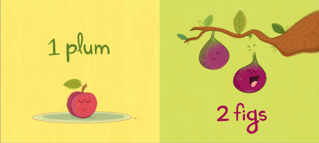CARRIE: I LOVED seeing the illustrations take shape! I remember in particular being asked if it was OK with me for the fruits to have faces and personalities. I hadn’t considered that before, but was definitely OK with it. Once I saw the initial sketches, I was so glad I had said yes because I fell in love with all the hilarious fruit expressions! It was really exciting to get to see the process from sketches to final art, and I really appreciated the opportunity to give my own input at various stages, which I hadn’t expected going in.