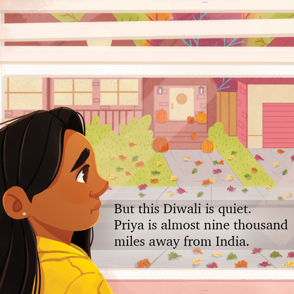 SHACHI: My publisher involved me from the early process. They shared Aishwarya’s work and asked what my thoughts were. I loved her work. It was colorful and beautifully detailed. Knowing that Aishwarya is from India, I was happy cause she too celebrates Diwali and could bring out all the colors of festival.