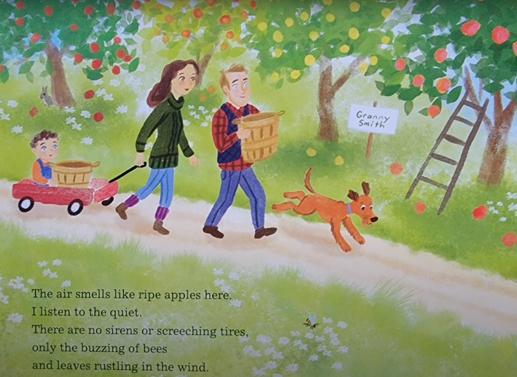 What beautiful illustrations. This book gives me such a nostalgic feeling. It brings to mind the smell of warm apples cooking in my mother’s kitchen. This truly is a perfect heat-warming picture book for this cool Fall day.