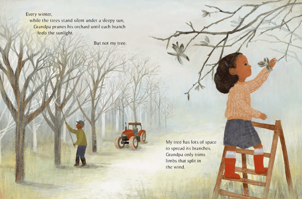 Brief Synopsis: Of all the trees in Grandpa’s orchard, the one he planted for his granddaughter is his favorite. The other trees are cultivated to provide income, but this tree is special, lovingly cared for by grandfather and granddaughter together.
