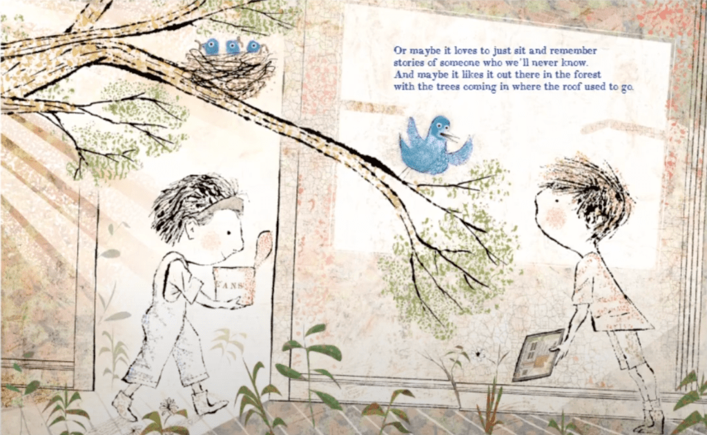 Brief Synopsis: “Two children set off to figure out who abandoned a house and why by piecing together clues found, books left behind, forgotten photos, and discarded toys, creating their own vision of those who came before, in this deeply moving tale of imagination.” [from Amazon description]