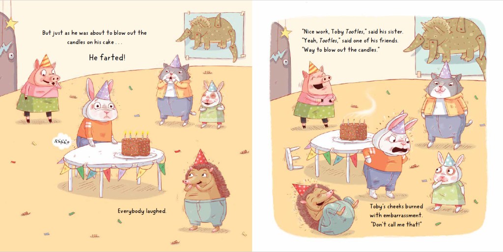 I think adults often forget that young children can feel deeply embarrassed. It’s such a universal emotion! I’m sure kids will empathize with Toby’s troubles, even as they laugh at the humor in this book.