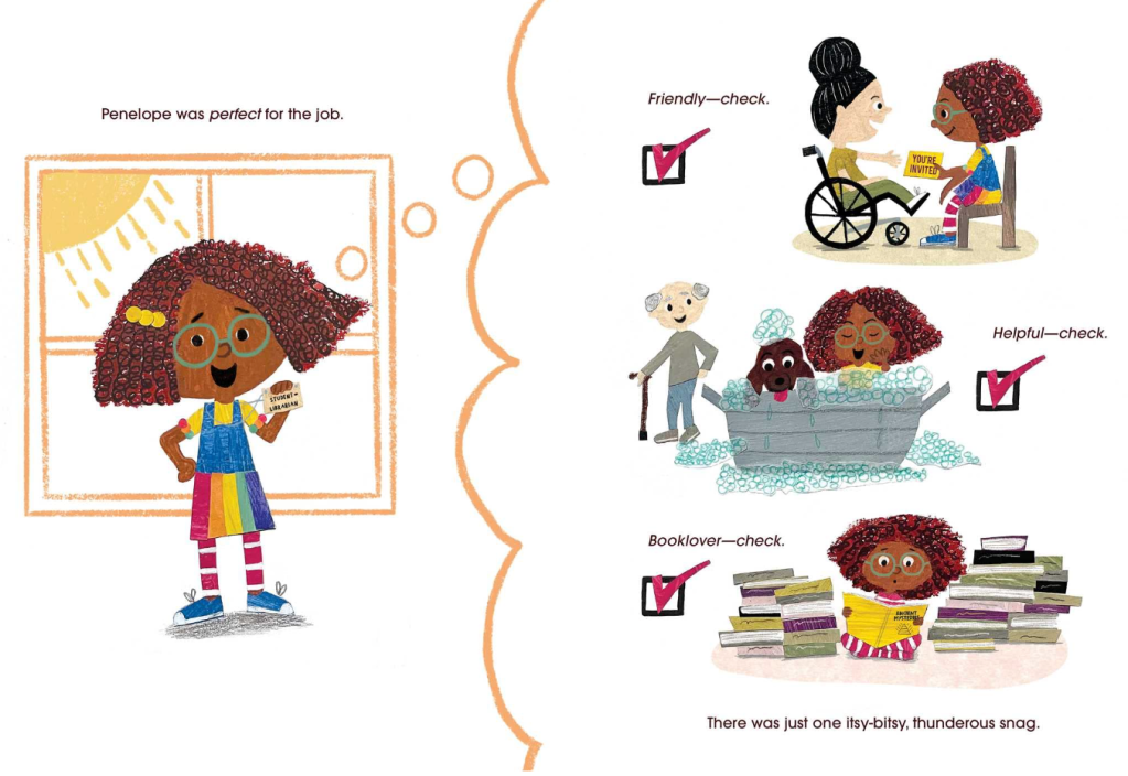 Penelope is perfect for the job of student-librarian. Friendly? Check. Helpful? Check. Book lover? Check. There’s just one snag. Penelope is…LOUD. Bookcases may topple and the ground may quake at the sound of her voice, but Penelope is determined to prove she’s perfect for the job and stay true to herself.