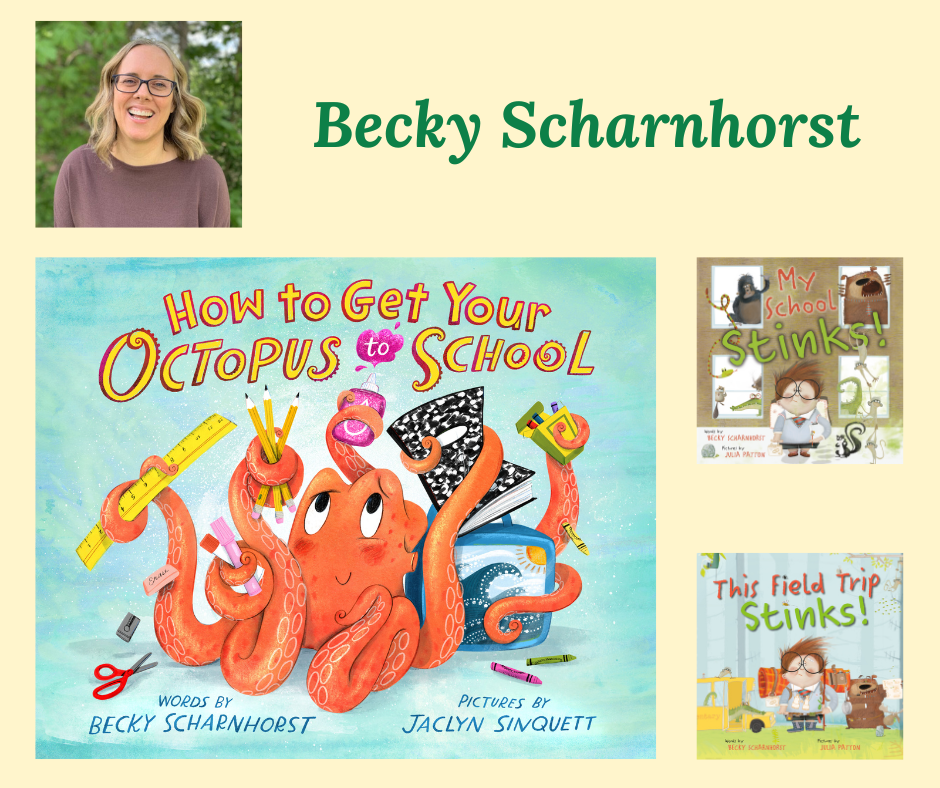 ⭐️ a copy of Becky Scharnhorst‘s brand new picture book – just coming out tomorrow! – HOW TO GET YOUR OCTOPUS TO SCHOOL (Flamingo Books, May 16, 2023)
