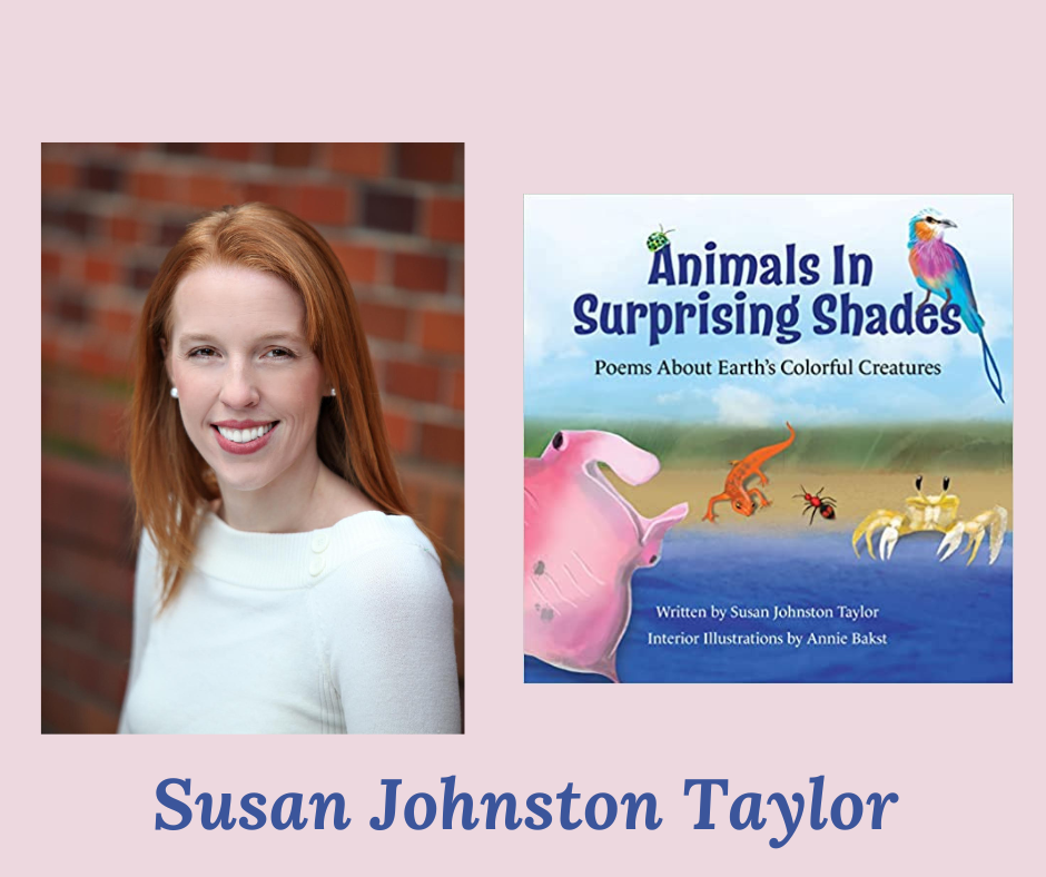 ⭐️ a signed copy of ANIMALS IN SURPRISING SHADES: POEMS ABOUT EARTH’S COLORFUL CREATURES (Gnome Road Publishing, March 28, 2023)from author Susan Johnston Taylor! This book is great for classrooms and recommended by SLJ!