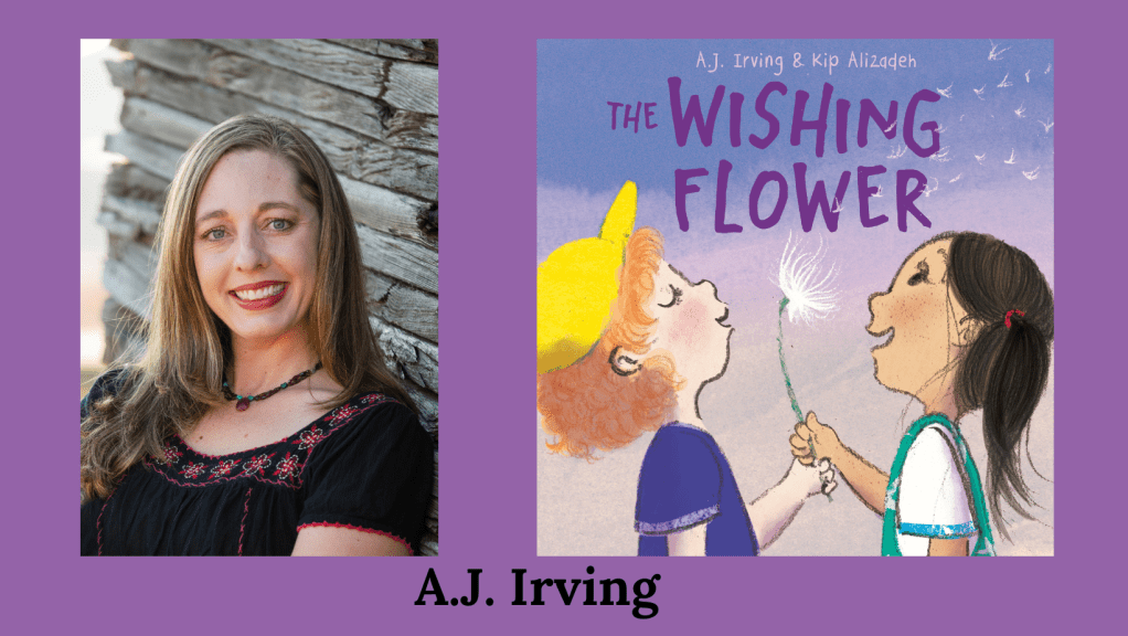 A.J. Irving grew up in Boise, Idaho, writing stories and daydreaming about becoming an author. Now, she writes picture books and poetry beneath an old elm tree in Salt Lake City. A.J. reads kidlit every day and dances every chance she gets. She is the author of Dance Like a Leaf (Barefoot Books, 2020) and The Wishing Flower (Knopf BFYR, May 30, 2023).