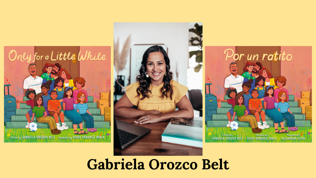 Bio: Gabriela Orozco Belt is a children’s book author who lives in a small town in the Mojave Desert. Inspired by her experiences of growing up bilingual and bicultural, she writes stories for children so they can see themselves in books. Gaby’s debut picture book, Only For a Little While serves to soften and process the feeling of being uprooted and see change as a temporary difficulty that families can overcome with mutual support. When not teaching, writing, or reading, she can be found spending time with her husband, three children, and extended family.
