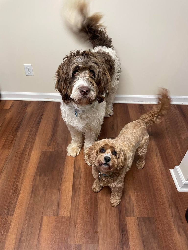 Norman and Gatsby, Mary’s writing buddies, who are undoubtedly extremely helpful!
