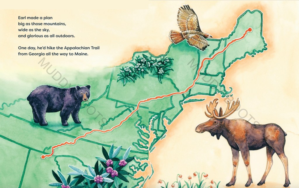 Links To Resources: virtual tour of the Appalachian Trail for kids; 5 year old hikes the entire Appalachian Trail (video); hiking games and activities for kids; back matter on Earl Shaffer and the Appalachian Trail at the end of the book.