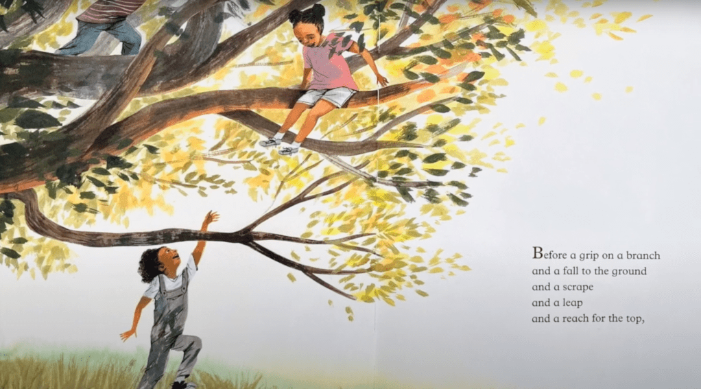 Why I Like This Book: Everything about this book is gorgeous! The simple, yet beautifully told story, the lyrical language, the pen and ink, gouache, and collage artwork that makes Nell’s world look so warm, the way so many of the joys of childhood are captured around this tree is just entrancing. Nell’s tender care for her seed, that becomes a sprout, that becomes a sapling, that becomes a tree, which becomes her family tree in both the literal and figurative sense is a model for living and loving. (And as an added bonus, for writers this is a mentor-worthy example of how to write a really good parallel story line!)