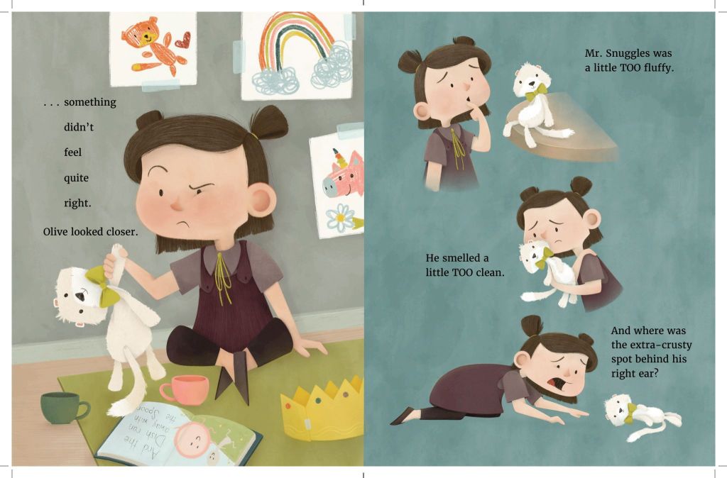 Olive loves her Mr. Snuggles more than anything else in the world. He’s cuddly. Reliable. Perfect. And unfortunately . . . lost! When Mr. Snuggles mysteriously reappears, Olive couldn’t be more excited. Except, something doesn’t feel quite right. Mr. Snuggles is a little too clean and a little too fluffy. He’s an imposter! Now Olive must make room for more than one Mr. Snuggles in her heart or find a way to rid the Imposter from her life for good.
