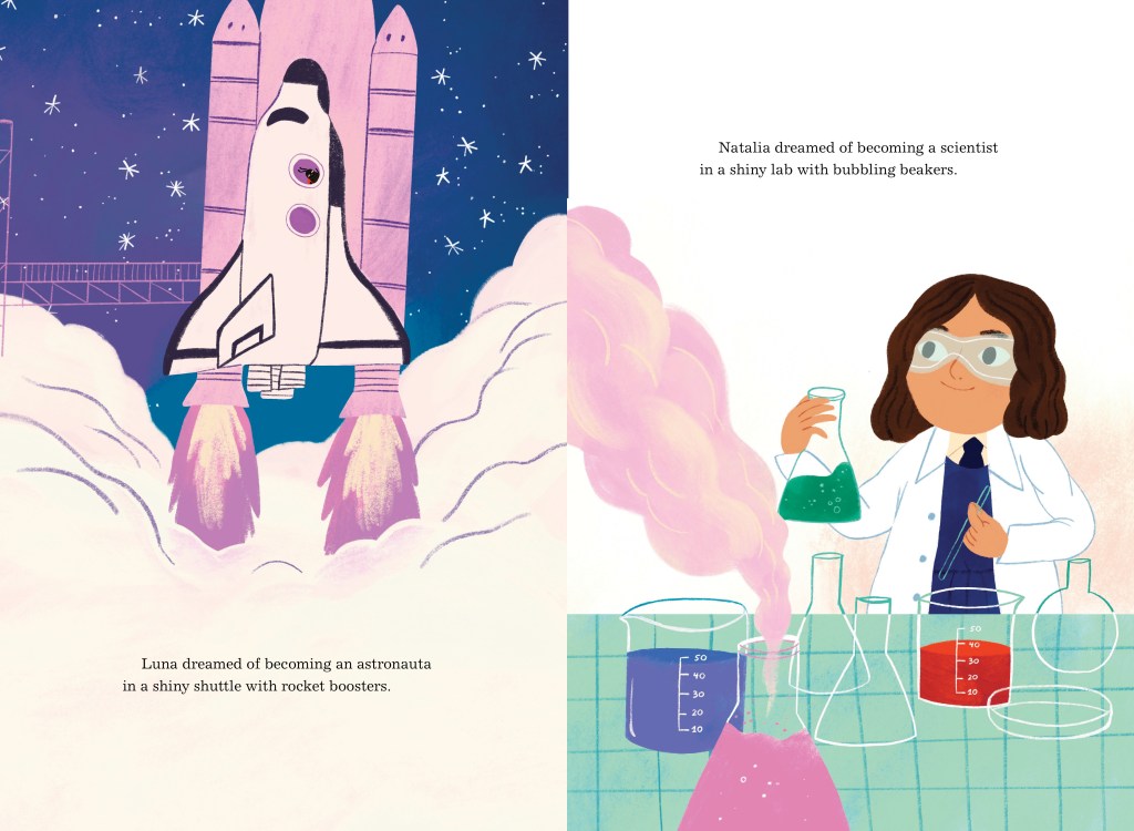 Natalia is a chica, an ambitious girl with dreams of becoming a scientist. Luna is a chinita, an adventurous ladybug who dreams of visiting the stars. Neither dream is easy to reach, yet together anything is possible. The story is inspired by the determined group of Chilean high school girls who convinced NASA to send their ladybug experiment to space!