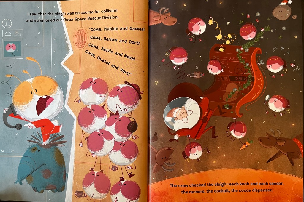 Estrela Lourenço’s art thrills me every time I look at any part of the book! Our collaboration is an example of two creatives coming together to make the very best book possible. I made changes after I saw her art and was able to see that she’d covered some concerns I had about how things on Mars would give a nod to the original while also depicting a Mars Christmas.