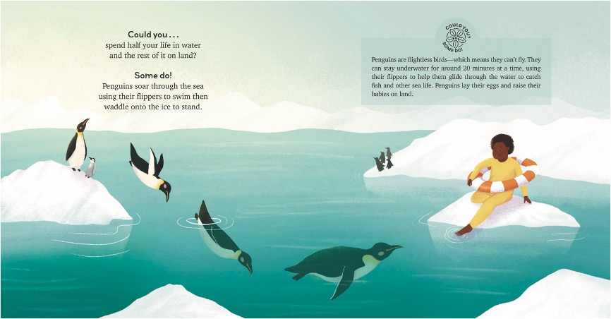 Embark on an extraordinary journey into the captivating world of nature, where animals from around the globe showcase remarkable abilities that leave humans in awe. Readers will delight in learning as each page invites them to ponder the question, “Could you?” followed by interesting and informative facts about animals who do.