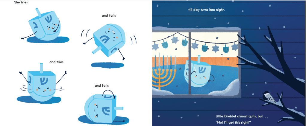 LITTLE DREIDEL LEARNS TO SPIN is a rhyming Hanukkah picture book about perseverance and having a growth mindset when learning a new skill. To add to the fun and authenticity, Yiddish words are sprinkled throughout, with a glossary and pronunciation guide in the back matter.
