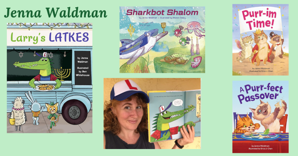⭐️ Winner’s Choice of a 30 minute Zoom Ask Me Anything from author Jenna Waldman OR a signed copy of one of her books: LARRY’S LATKES (Apples & Honey Press, October 1, 2021) (which tied for 4th in the 2018 Holiday Contest – more inspiration!!!), SHARKBOT SHALOM (Apples & Honey Press, August 1, 2021), or PURR-IM TIME (Apples & Honey Press, February 1, 2023) A PURR-FECT PASSOVER is due out from Apples & Honey Press on March 25, 2025.