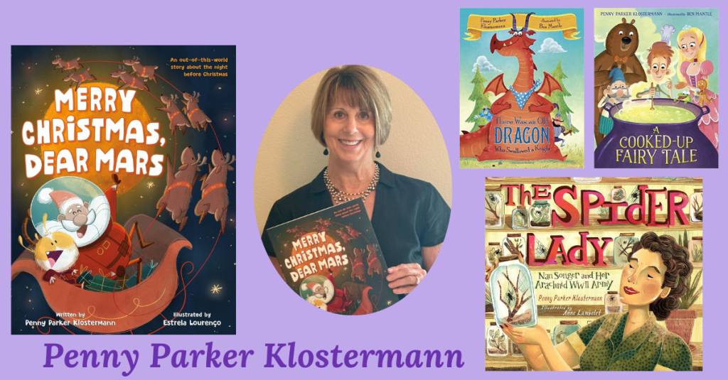 ⭐️ Picture Book Manuscript Critique AND a Signed Copy of MERRY CHRISTMAS, DEAR MARS from Penny Parker Klostermann, talented author of MERRY CHRISTMAS, DEAR MARS (September 3, 2024 from Macmillan/Godwin Books) – a story that placed 2nd in the 2011 Holiday Contest! How’s that for inspiring? – as well as THERE WAS AN OLD DRAGON WHO SWALLOWED A KNIGHT (Random House 2015) and A COOKED-UP FAIRY TALE (Random House 2017) and the forthcoming SPIDER LADY: Nan Songer and Her Arachnid WWII Army (Astra/Calkins Creek 2025)