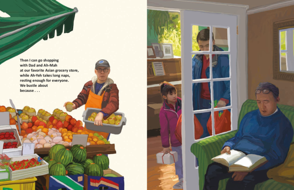 Brief Synopsis: [from the publisher] “In the spring, Lily and her relatives gather for the Ching Ming Festival to honor their beloved ancestors. The day is full of joy and community, but also reverence and remembrance. As Lily zips between playing Chinese checkers with her cousin and helping her grandparents prepare a delicious meal for the family, a second narrative unfolds to reveal the sacrifices her great-great-grandpa had to make to settle in America.”