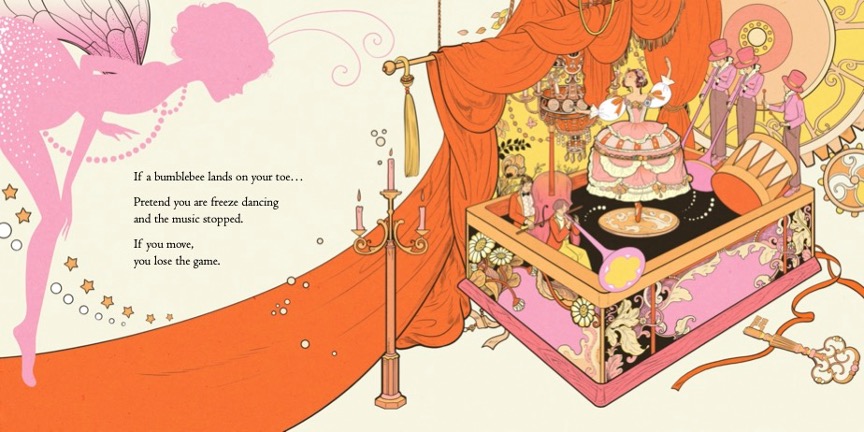 CYNTHIA: The first version I wrote in 2018 went through several revisions. The big revision came after the picnic with the child and the bumblebee when I wrote it in a lyrical voice. I had been thinking about how some picture books focus on one small moment and wanted to try doing exactly that. The new second person voice brings the child reader right into the story. One thing that helped me develop my lyrical voice was the book, The Ode Less Traveled by Stephen Fry.