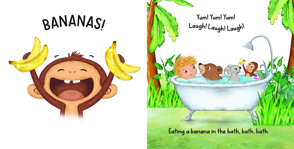 And I wrote the first draft of BANANAS IN THE BATH! while sitting on the toilet lid, next to my son, in the bathtub, happily eating his banana.