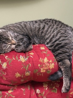 Angie’s writing space, and Princess Charlie, her writing buddy (when she’s in the mood!), who looks a lot like her wall hanging!