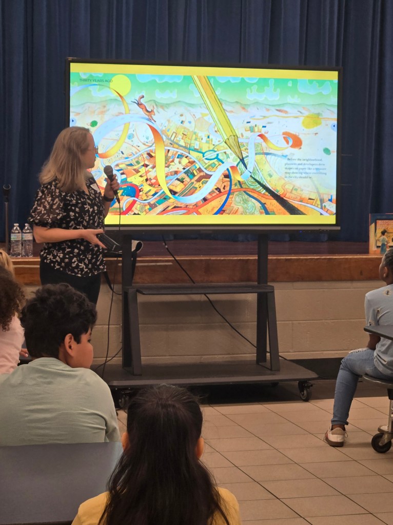 Here is a picture of me at a school visit. I really loved sharing the book with the students.