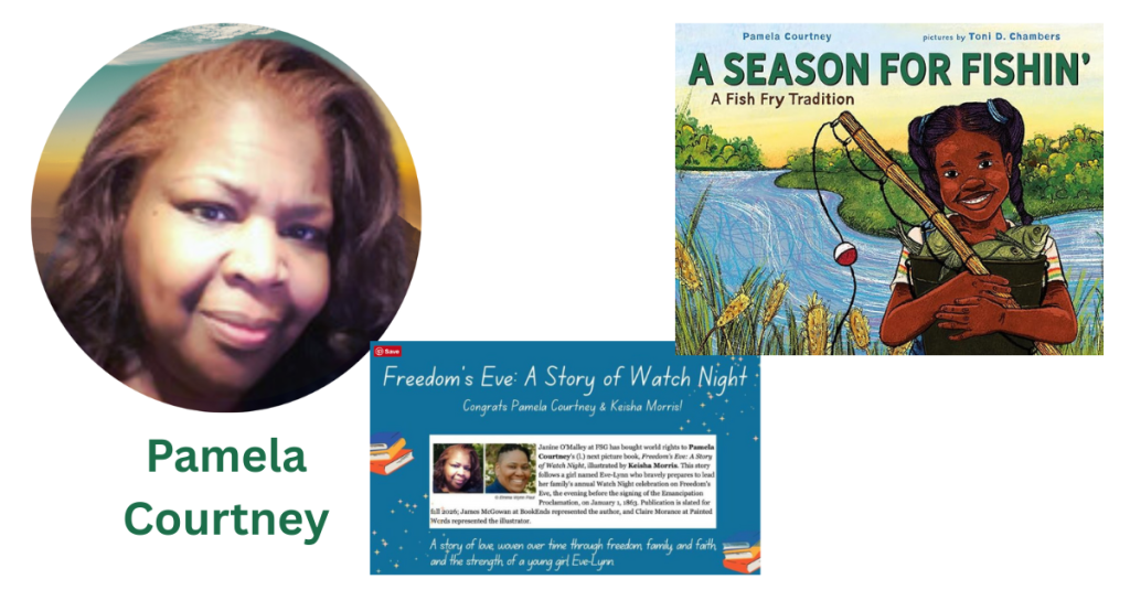 Pam’s Louisiana upbringing inspired her 2025 debut A Season for Fishin’, A Fish Fry Tradition and  nurtured her life’s passion for writing, teaching, music. Combining these loves, Pam brings the eyes of a classroom teacher to each narrative she crafts and created MyLMNOP, a literacy and music program for early learners  “My duty is great,” says Pam. “I am a writer who teaches. I am a teacher who writes.”