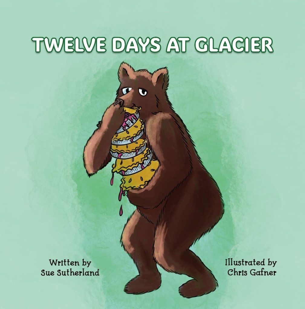 SUE: This is an interesting story. I wrote TWELVE DAYS OF YELLOWSTONE first and my talented, high school granddaughter wanted to illustrate it. During that process, her father, Chris Gafner took an interest. I asked him if he wanted to illustrate his own book. He quickly indicated that he was willing to give it a try. Nine months later he has produced these glorious illustrations. In the meantime, after several years, granddaughter is currently attending Purdue University and there are no completed illustrations. But she had some wonderful ideas. I’m waiting to see how TWELVE DAYS AT GLACIER does before I proceed with the Yellowstone book.