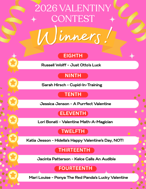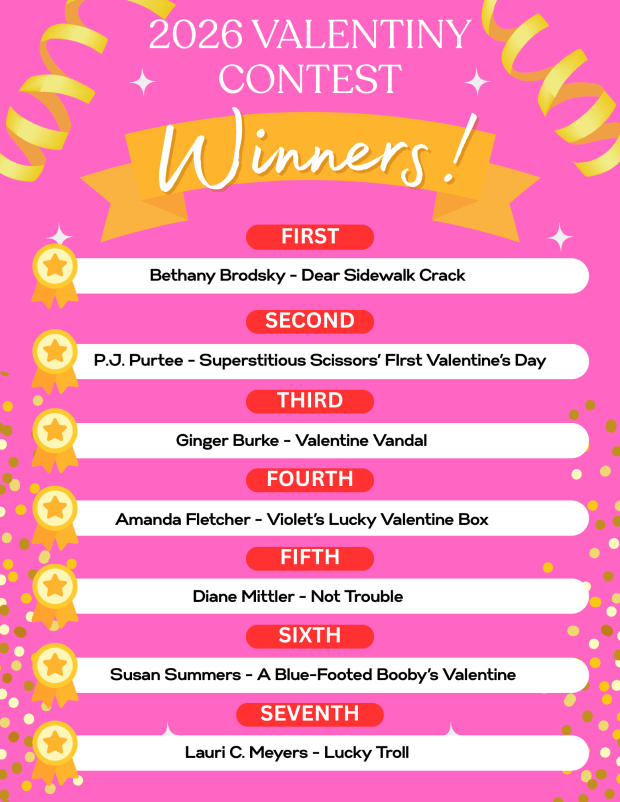 The announcement of the WINNERS OF THE 2026 VALENTINY CONTEST as voted on by you, our devoted readers!!!