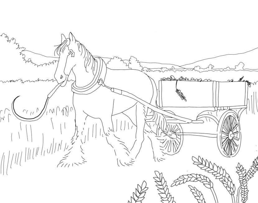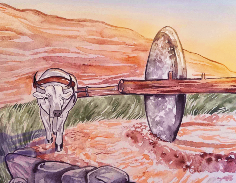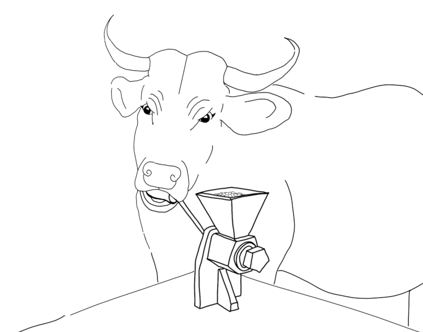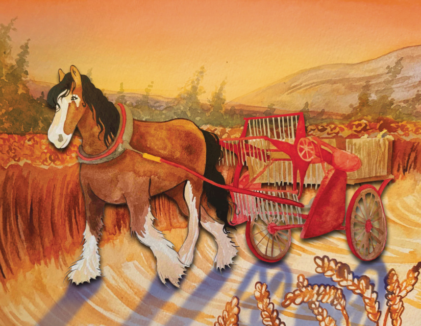 JASMINE: I received a sketch version of the book as part of the illustration process. This let me start working earlier on those final edits I mentioned above, and I was able to catch a couple spots where I apparently should have included art notes. To be clear, the illustrator did an amazing job, but in the sketch draft, she had the horse and ox using the same inefficient tools (sickle, hand mill) in the second half of the book that the hen had used in the first half. Iโd gotten so comfortable with the version of the story in my head that I didnโt realize a really important lessonโthat certain people have better tools for the jobโwas entirely unwritten. I was able to get some reference photos of a combine harvester and an ox-driven mill passed along, and I think the final version of the artwork makes the point very clearly.