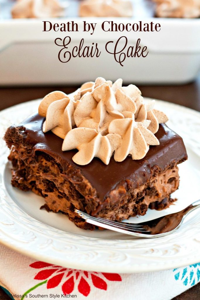 Now, as a reward for putting up with my shameless self-promotion, may I offer you Something Chocolate? Death By Chocolate Eclair Cake sounds like a perfect choice!