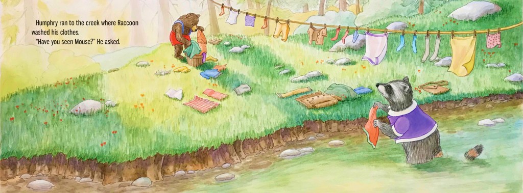 BEVERLY: Thankfully, the editor’s vision for the story was the same as mine therefore there were only minor changes to the text such as removing dialogue tags. I did have a say in the placement of the text on the pages, but later a sentence or two of text was moved on to the next page for three of the spreads. I was concerned about this at first, but then realized that the change made the page turns stronger. The only changes to the art was to make the mouse smaller in a couple of the spreads.