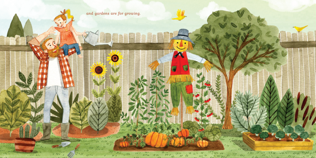 CHELSEA: My husband puts in a backyard garden every year. When our daughter, Tessa, was small, my favorite thing about spring and summer was watching her hanging out in the garden with her dad. As she grew older the tasks she could/would help with changed, but the memories they made were always precious. It struck me how she was growing up just like the garden did each year. And Gardens Are For Growing was born!