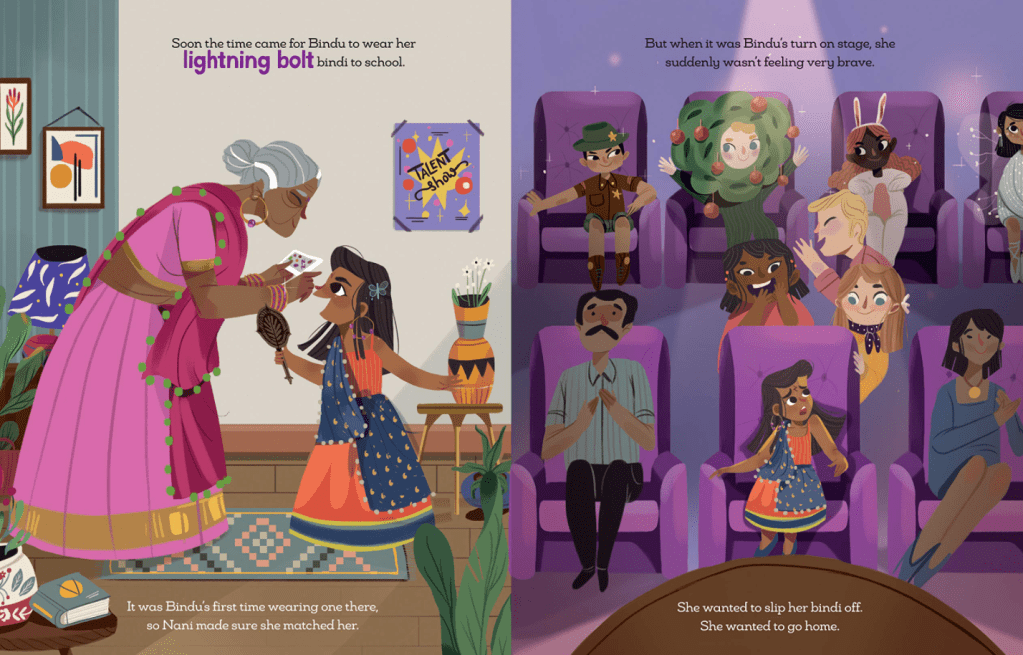 Brief Synopsis: Bindu loves her family, especially her nani, and she loves the bindis that nani sends her. But sometimes, she feels different in a way that doesn’t feel good. But with her nani beside her and a lightning bolt bindi for courage, she finds she’s able to embrace who she is even if others sometimes find her differences strange.