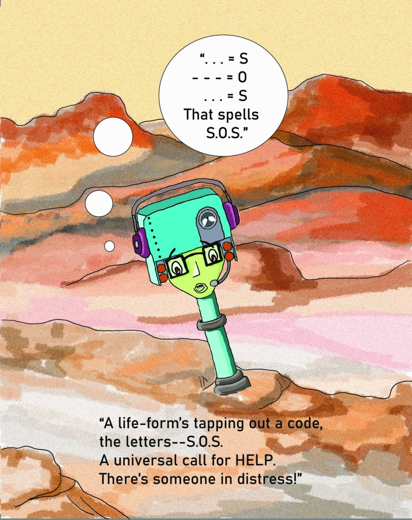 CURIOSITY’S DISCOVERY takes the reader on a mystery adventure on Mars as the trusty rover hears an unknown radio signal. She discovers an older rover, Spirit, just as his batteries crash and his transmission ends. Now, she must revive him if she has any chance of having a friend.