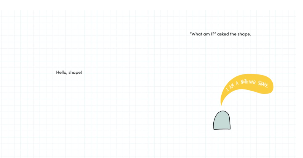 Opening: “This is my shape. Hello, shape! “What am I?” asked the shape. I am a nothing shape. You are not a nothing shape. Look! I can draw a cat. I want a horse.