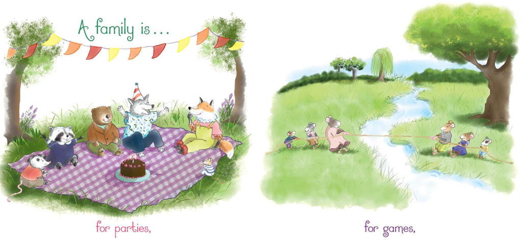 Brief Synopsis: (from the publisher) “Whether big or small, a family is for reading, for laughing, for holding you tight. And, perhaps most importantly, loving you for who you are.”